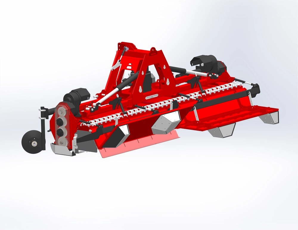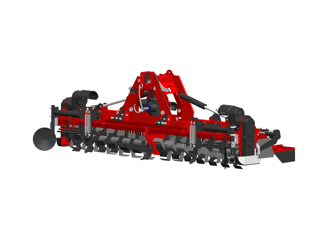 It has a structure similar to the folding rotavator but is also equipped with a furrowing system. This system can be customized based on the crop and field conditions, which increases the machine’s efficiency, precision, and adaptability for different types of cultivation.