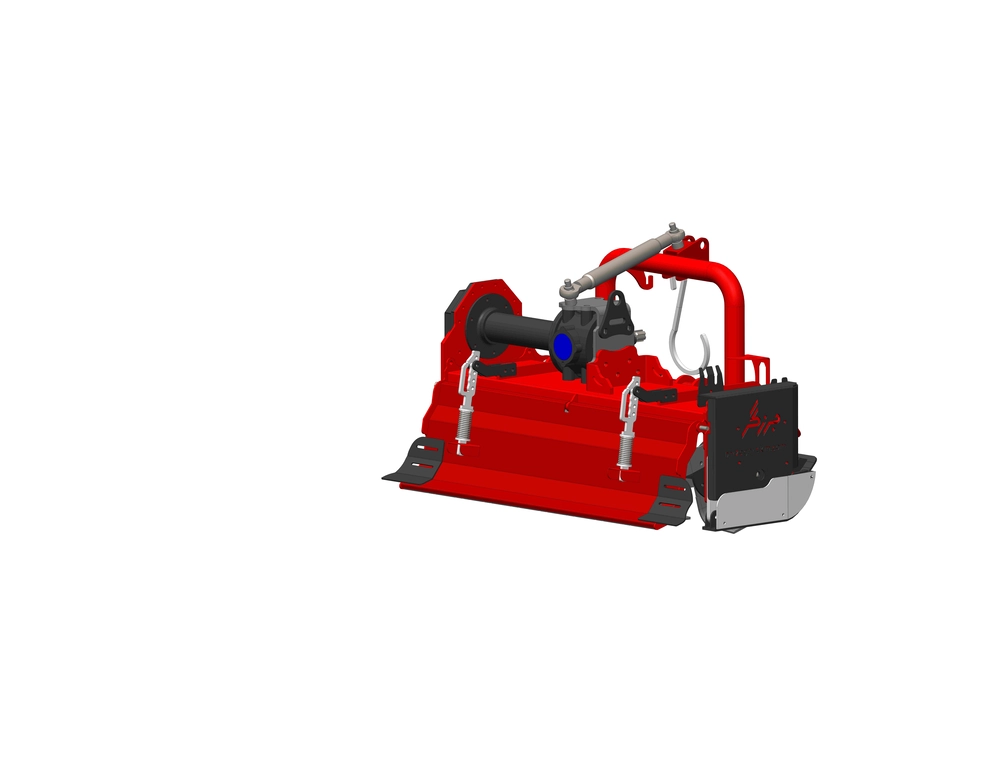 - Rear Flap: The rear flap is spring-loaded for ground leveling. On ultra-heavy-duty tillers, this is a hydraulic feature.