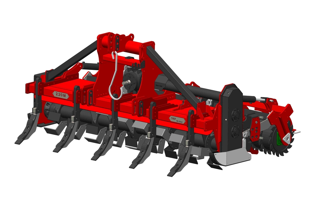 - Automated Leveling: The rear door is equipped with springs for effective soil leveling. On heavy-duty rotavators, this function is managed hydraulically.