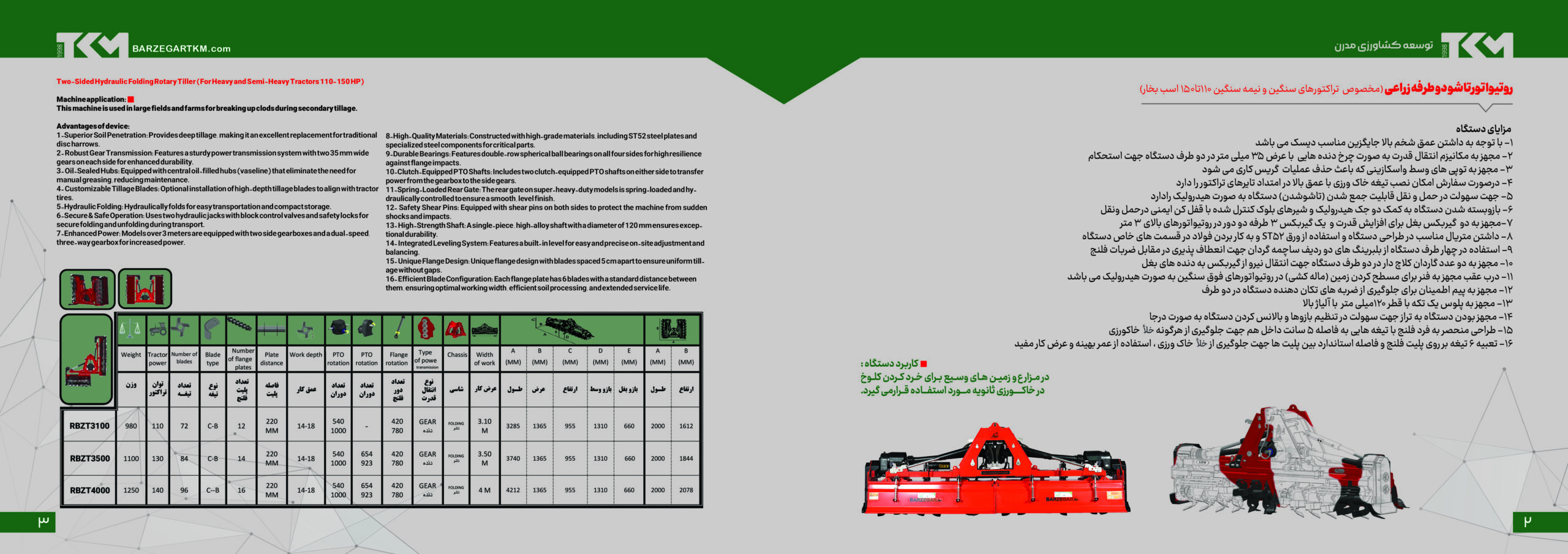 7-مجهز به دو گیربکس بغل برای افزایش قدرت و یک گیربکس 3 طرفه دو دور در روتیواتورهای بالای 3 متر