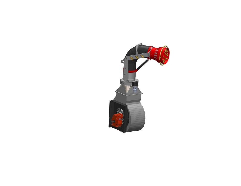 21)فن سانترفیوژ با لوله خرطومی دارای موتور هیدرولیک با قابلیت چرخش افقی و یک جک هیدرولیک با قابلیت چرخش عمودی با گیربکس دوسرعته دارای کلاچ مرکزی برای افزایش عملکرد دستگاه و افزایش عمر فن و گیربکس